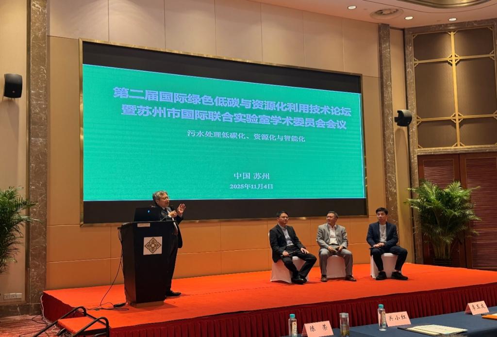 2025年11月4日,由苏州市科学技术局指导,我校与日本东北大学联合主办的“第二届国际绿色低碳与资源化利用技术论坛”在苏州举办。本次论坛汇聚了国内外知名学者、企业代表及行业专家,以“污水低碳化、资源化、智能化”为主题设计了报告环节和产业实践交流。