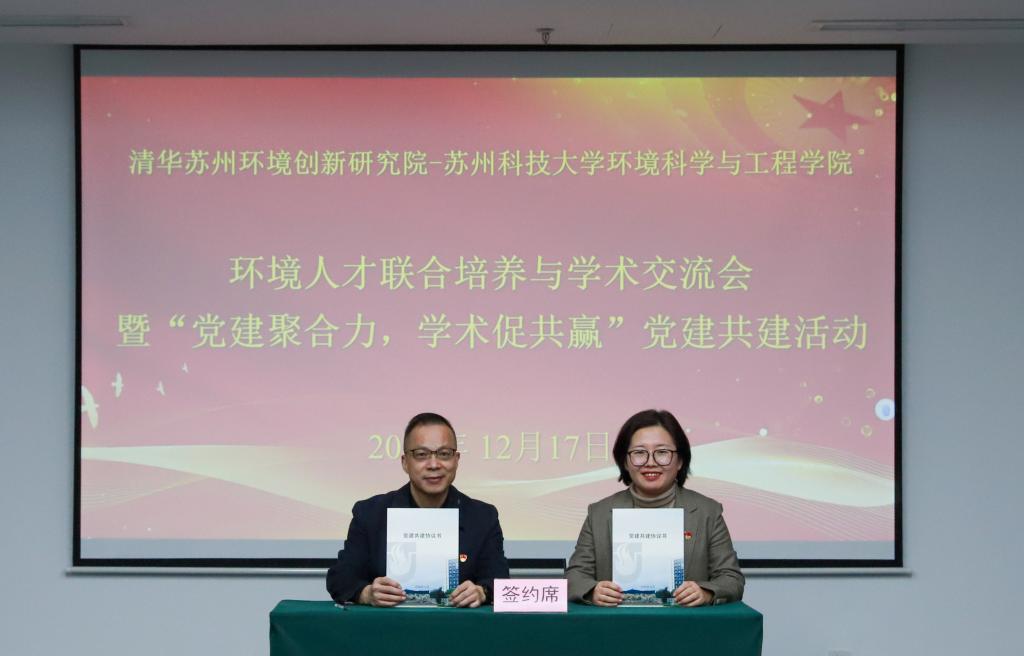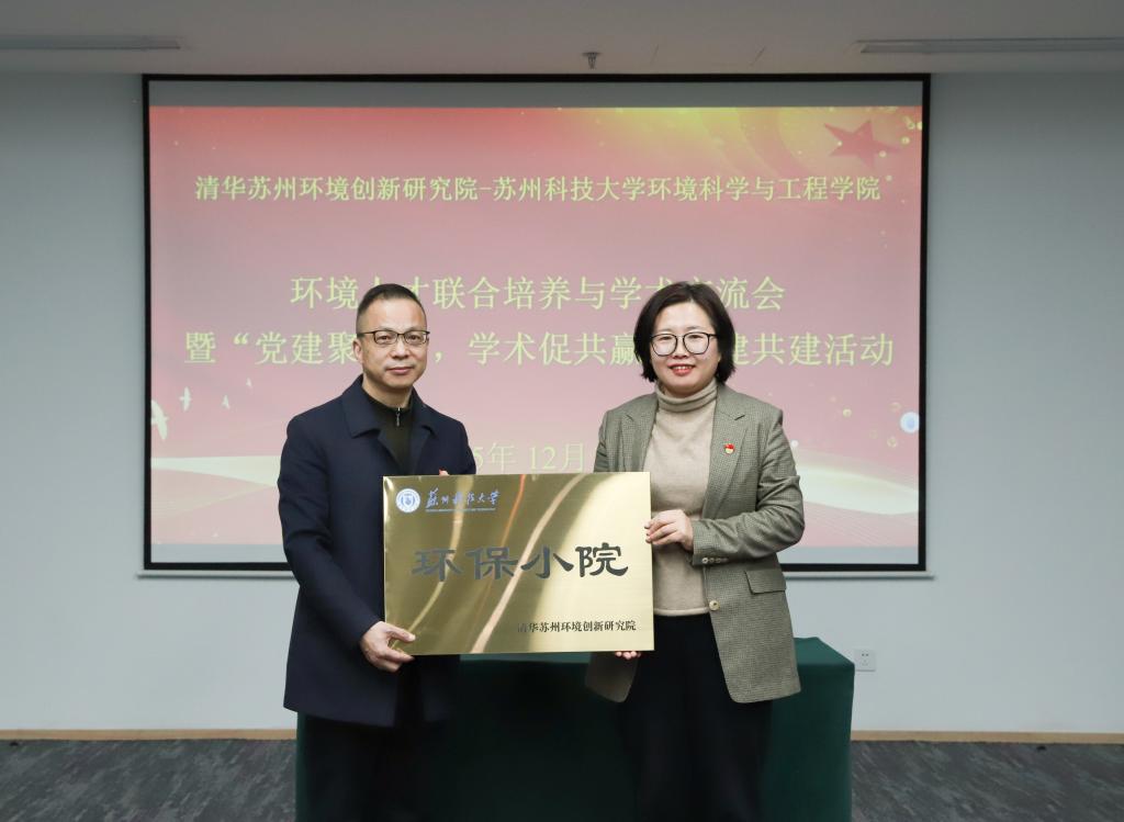 院长助理姜晶及联合培养导师参加交流。双方围绕党建共建、研究生培养、科研合作等展开深入探讨。会议由清华苏州环境创新研究院科研人才部副主任迟茜、人才培养管理办公室主任赵希共同主持。