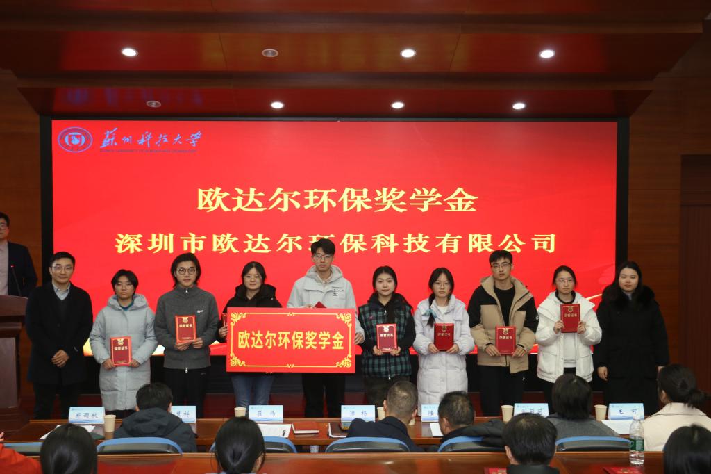 举办2025年度企业奖助学金颁奖仪式。苏州零碳时代科技有限公司董事长陆昌国,苏州市东方环境工程有限公司副总经理陈慧科,苏州格力美特实验室科技发展有限公司财务总监刘莉莉,深圳市欧达尔环保科技有限公司行政人事部门郑雨秋,学校学生工作处副处长崔炜,学生工作处学生资助管理中心主任王可,环境成人影院