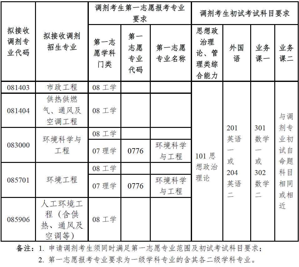 接收调剂考生第一志愿专业范围及其相关要求见下表: